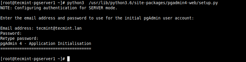 # python3 /usr/lib/python3.6/site-packages/pgadmin4-web/setup.py